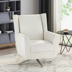 Flash Sale ๐ GDFStudio Kairo Fabric Swivel Chair, Ivory/Light Champagne โญ