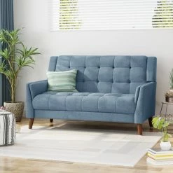Brand new ๐คฉ GDFStudio GDF Studio Evelyn Mid Century Modern Fabric Loveseat, Blue/Walnut ๐คฉ
