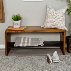 Discount ๐ Walker Edison Alpine 42″ Rustic Two-Tone Solid Wood Entry Bench – Amber โ๏ธ
