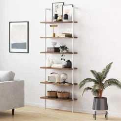 Hot Sale 🔥 Decor Love Modern Industrial Wall Bookcase, Metal Frame & 6 Shelves, Rustic Oak/White ✨