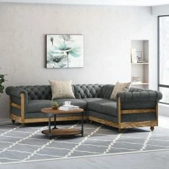 Best Pirce โค๏ธ Jennifer Taylor Home Jack 84″ Modern Tuxedo Tufted Sofa, Dark Navy Blue Velvet โจ