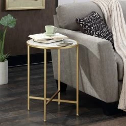 Deals ๐ Convenience Concepts Gold Coast Faux Marble Round End Table U12-128 โ