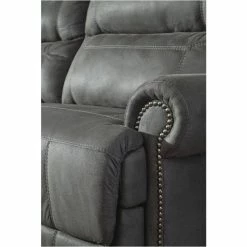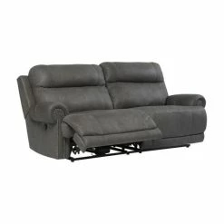 The Austere reclining sofa lives up to its nameβif weβre talking sparing that “puffy” look you might expect from a recliner. When it comes to contemporary style, it doesn’t hold back. Subtle touches such as sporty jumbo stitching, nailhead trim and a “weather worn” effect on the upholstery give this handsome piece a buttoned-up appeal and fresh feel. Frame constructions have been rigorously tested to simulate the home and transportation environments for improved durability. Corners are glued, blocked and stapled. Stripes and patterns are match cut. All fabrics are pre-approved for wearability and durability against AHFA standards. Cushion cores are constructed of low melt fiber wrapped over high quality foam. Features metal drop-in unitized seat box for strength and durability. All metal construction to the floor for strength and durability. The reclining mechanism features infinite positions for comfort. Style features Jumbo Stitching and panels with brads.