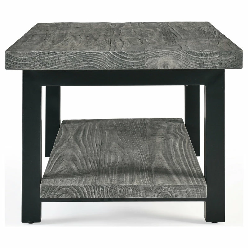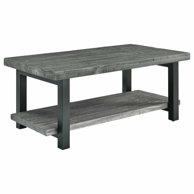 The Pomona collection features the exquisite workmanship of a solid wood top with metal legs that will last for years to come. Each piece is constructed of solid pine wood and finished to have the appearance of reclaimed wood. The reclaimed wood finish highlights natural wood variations such as cracks and knots which add to the piece’s character. Any item in this collection will add to the rustic industrial style of any space. Pomona Coffee Table has a rustic and natural style; measuring 42 inches in width it provides plenty of space for your decorating needs. Its solid Pine wood tops look like reclaimed wood. Knots, cracks and imperfections add to the character of your piece. Strong, powder-coated steel legs make a statement in your living space.