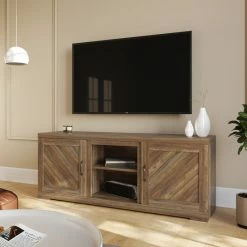 Hot Sale 😉 BELLEZE Hilo 58″ Barn Door TV Stand Console For TVs Up To 65″, Rustic Oak ✨