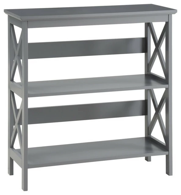 Oxford 3 Tier BookcaseGive your home a handsome makeover with the Oxford 3 Tier Bookcase. Featuring 3 spacious shelves where you can display books and collectibles. The X pattern creates a modern appeal with clean lines. Crafted with style and functionality in mind the Oxford 3 Tier bookcase will become a staple in your home. Also available in multiple finishes this piece will easily complement any home decor. Look for other items from the Oxford Collection for the complete look sold separately.