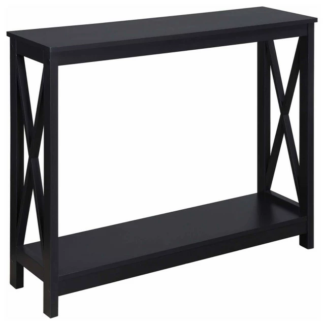 Oxford Console Table with ShelfAdd style to any room in your home with the Oxford Console Table with Shelf from Convenience Concepts. This transitional console table is just what you need to renovate any living space. Available in multiple finishes; the Oxford Console Table with Shelf will complement existing home furnishings while still offering a fresh new look. Two tiers of open concept shelving are accompanied by beautiful X frame side panels that will complete any coastal or farmhouse-themed decorated space. Plenty of room is available to display decorative pieces; collectibles; or even storage thanks to two spacious shelves. Built from sturdy manufactured wood and carefully painted with non-lead-based paint; this console is sure to stand the test of time. Shop the beautiful Oxford Collection by Convenience Concepts to add more style to your home today; each sold separately.