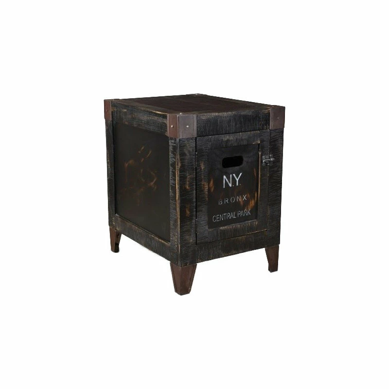 The City Collection features rustic black painted wood with metal accents and stenciled text from major cities in the United States