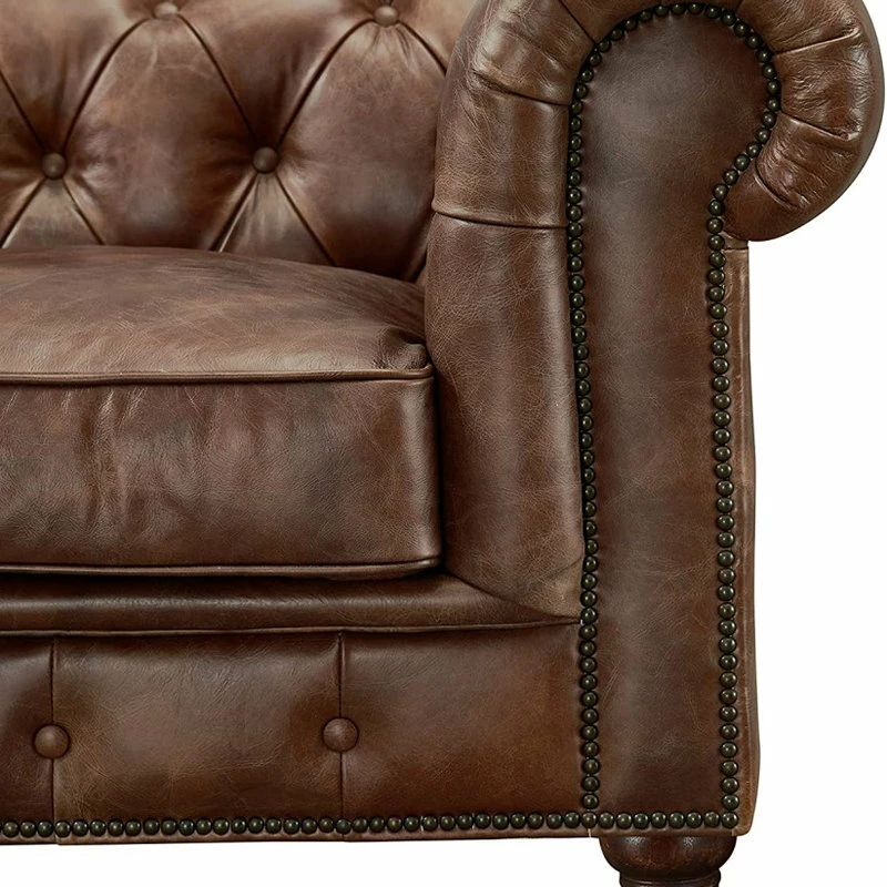 - Rolled arms with nail head detail along the front