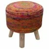 This Evolution by Crestview Collection Grace fabric carved stool is crafted from solid Mango wood. Generous size and stature, use this as a foot stool or comfortable extra seating. The intricate cut out design along the legs and base gives this piece a subtle uniqueness, while the Moroccan-patterned seat inspires the traveler within.