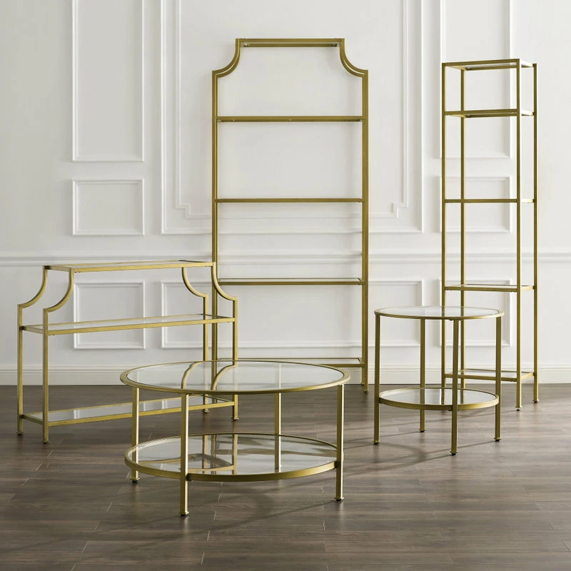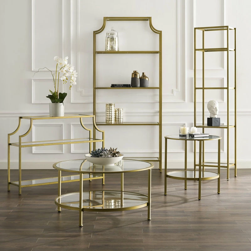 Buy ๐ Sauder International Lux Metal Frame Round Coffee Table In Gold Satin/Deco Stone ๐
