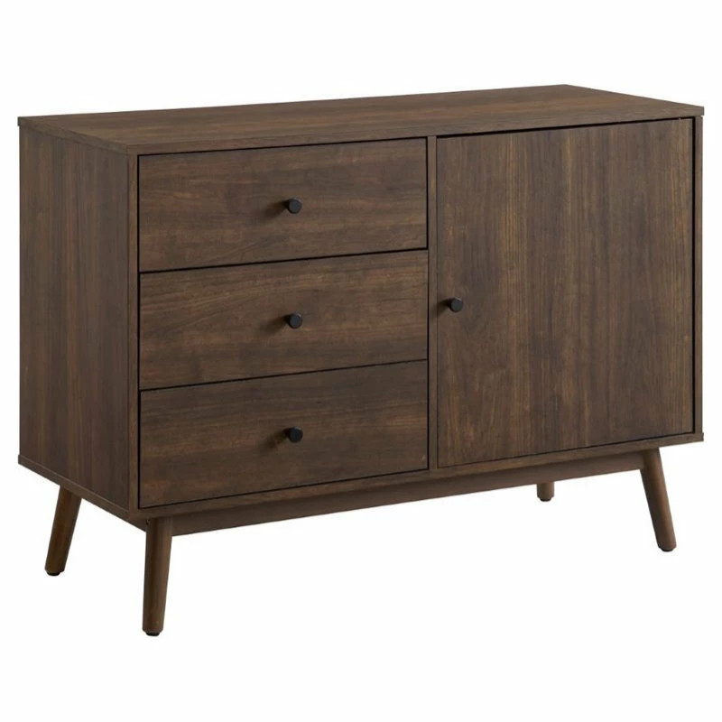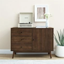 Stay organized in mid-century modern style with the Lucas Media Console. Featuring a large cabinet with an adjustable shelf, you can store everything from books and board games to dishes and flatware. With three large storage drawers, this console keeps smaller items organized and out of sight. The Lucas Media Console has clean lines and a simple design that complement any room in your home.
