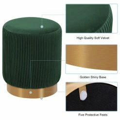 Brand new ๐ Duhome Elegant Lifestyle Round Pleated Golden Base Velvet Ottoman, Dark Green ๐