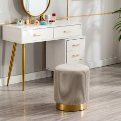 Deals ๐ฅฐ Duhome Elegant Lifestyle Round Pleated Golden Base Velvet Ottoman, Khaki ๐