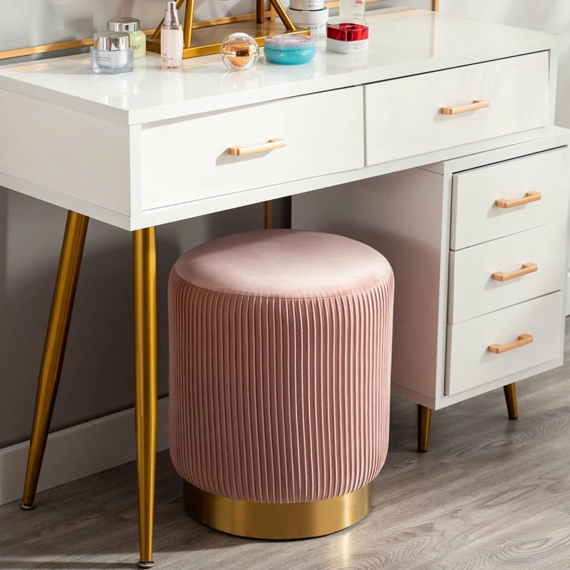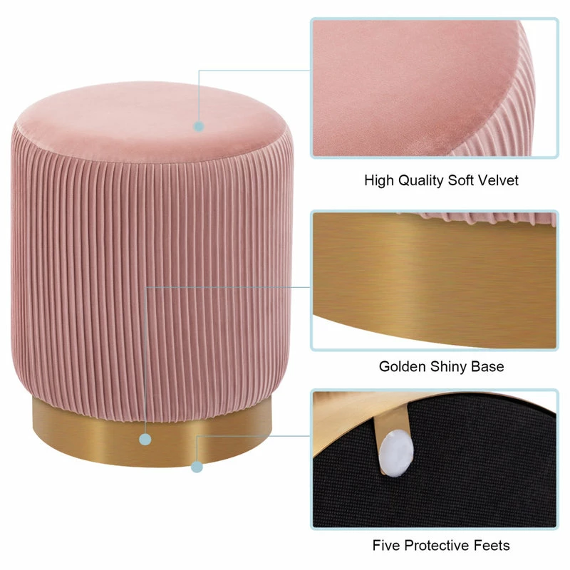 Best deal 🧨 Duhome Elegant Lifestyle Round Pleated Golden Base Velvet Ottoman, Salmon Pink 🧨