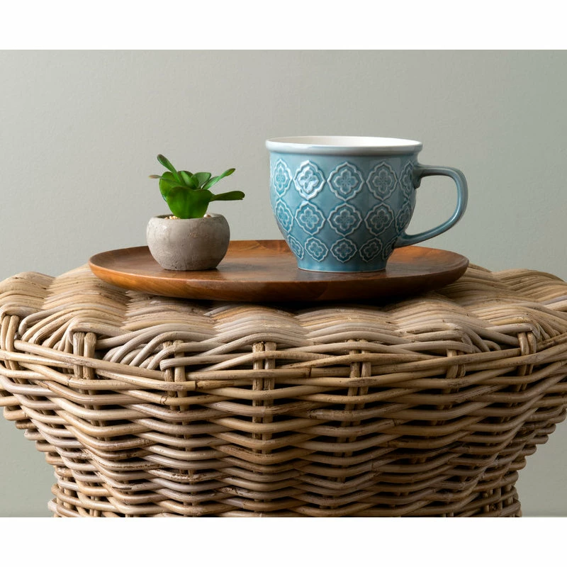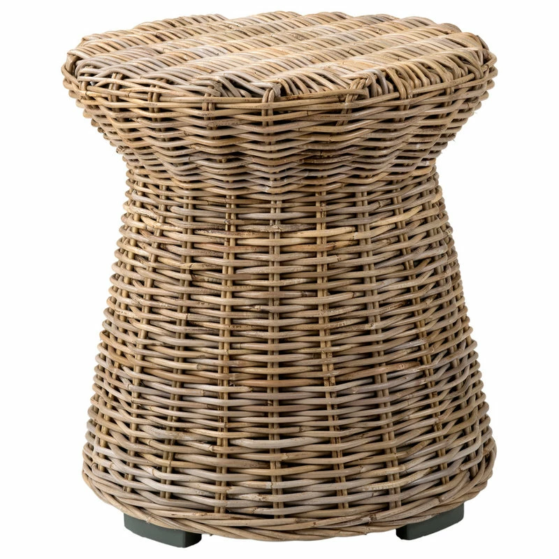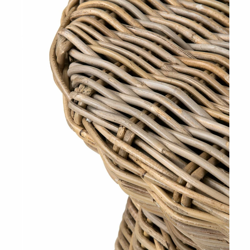 Woven together with smooth natural rattan fiber, this textured accent table has a lovely drum shape.