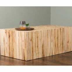 You won’t find a more unique center coffee table for your living room. Crafted from recycled teakwood, the Rowan coffee table has a simple design but powerful appearance. The top is covered in a circular wooden design that instantly catches the eye.