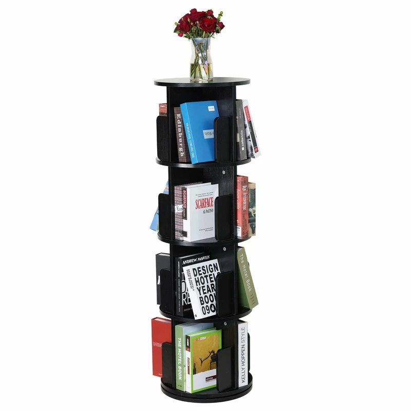 Its clean-lined frame is made from engineered wood in your choice of neutral finish. Four open shelf spaces in same heights and widths that provide the perfect place for your favorite books, accent pieces, and framed photos. It can also be arranged in a horizontal or vertical orientation depending on your taste and style. Best of all, this bookcase comes a 360 degree rotating for convenient using.
