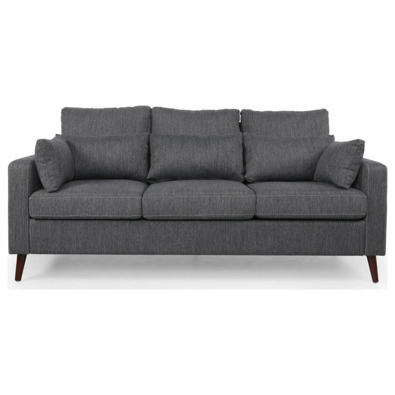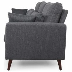 Bringing together modern elements to a classic design, our charming sofa offers everything you need for a perfect living room arrangement of sophistication and comfort. Perfectly balancing tapered wood legs with smooth upholstery, our impressive three-seater sofa set offers your home a delightful contemporary upgrade. This piece offers charming accent pillows that bring an extra dash of comfort to any living room space. Completed with thin splayed legs, this refined sofa will make any interior space into a relaxing refuge.
