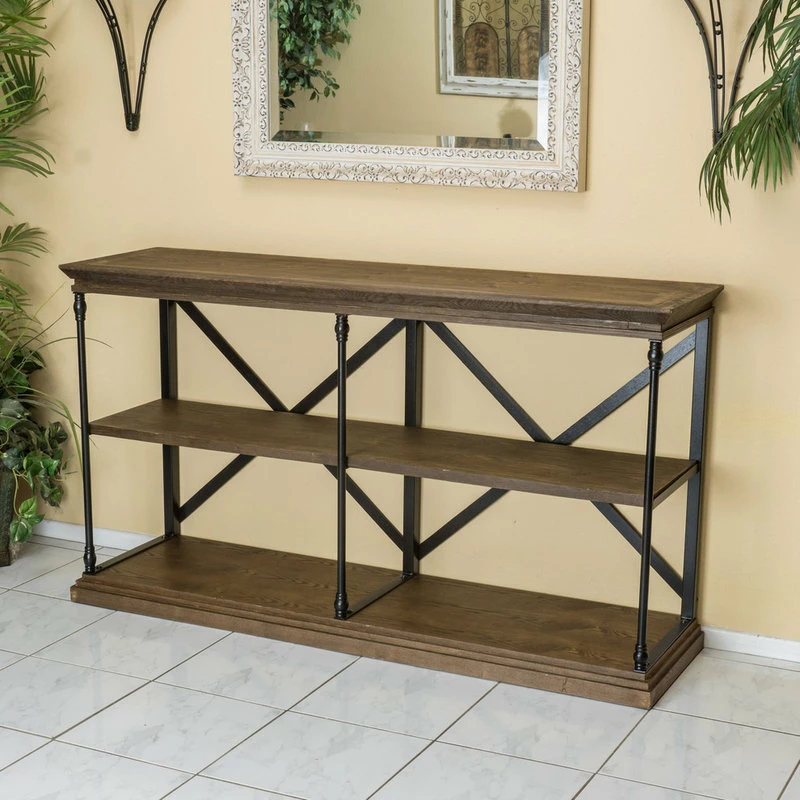 Whether you are in need of a console table for your foyer or a display shelf for your living room, our etagere bookcase will have you covered. Featuring an industrial design, our bookcase uses a metal frame for an exposed yet sleek look. The metal also creates a highly durable structure that is fortified with an X-frame stretcher to ensure the best stability for your home. Finished with natural pine and faux wood, this piece offers five delightful shelves that provide ample space for display and organization, allowing you to easily personalize your home.
