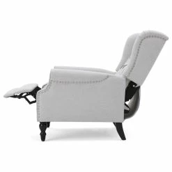 Perfect for entertaining or relaxing, our armchair uses a smooth pushback reclining mechanism and carefully crafted accents to tie your home together with absolute sophistication. This pushback recliner features gorgeous details such as button tufting, diamond stitching, and tonal piping to bring your decor to the next level. Finished with a lovely wingback design and rolled recessed arms, our recliner is as stylish as it is functional.