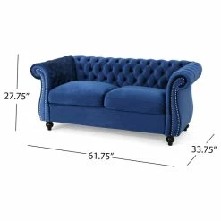With our gorgeous loveseat, the timeless Chesterfield look can make its way into your living room with a modern touch. Taking this cherished classic design, this piece features traditional elements such as deep button tufting, scrolled arms, elegantly turned legs, and nailhead accents. Finished with a low backrest, this loveseat offers an open, streamlined design for your lounge area. Along with its impeccable style, this deeply-seated loveseat provides exceedingly comfortable cushions, instantly making this the centerpiece of your interior space.