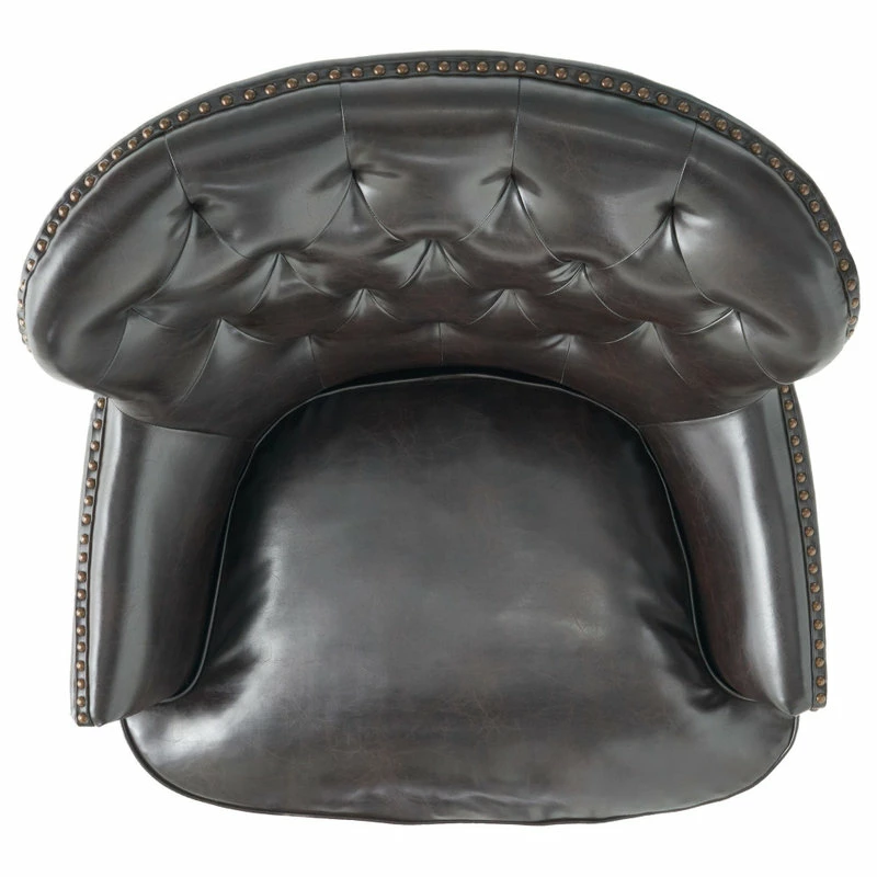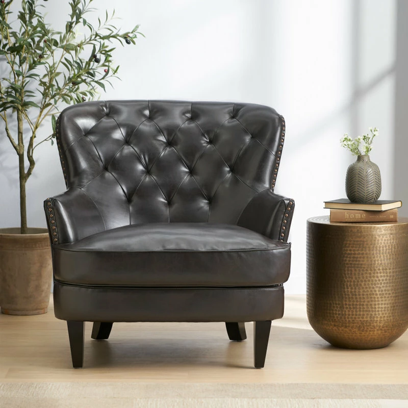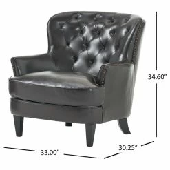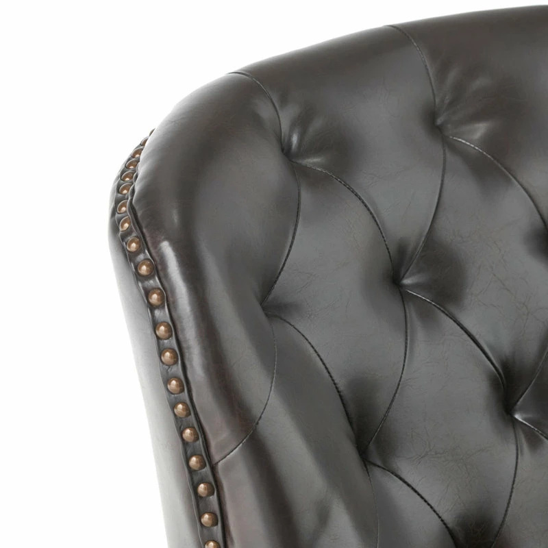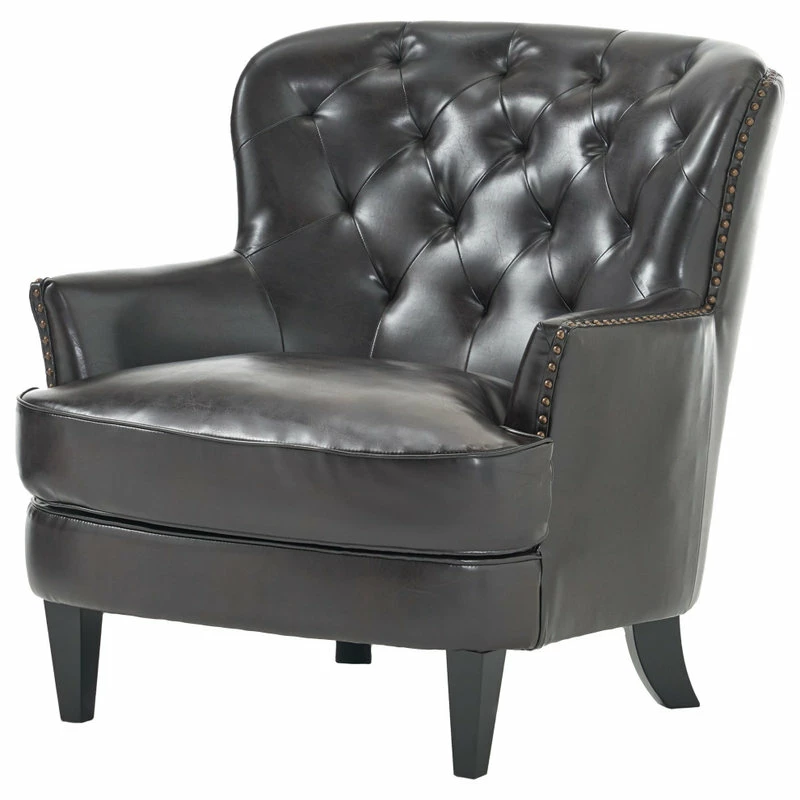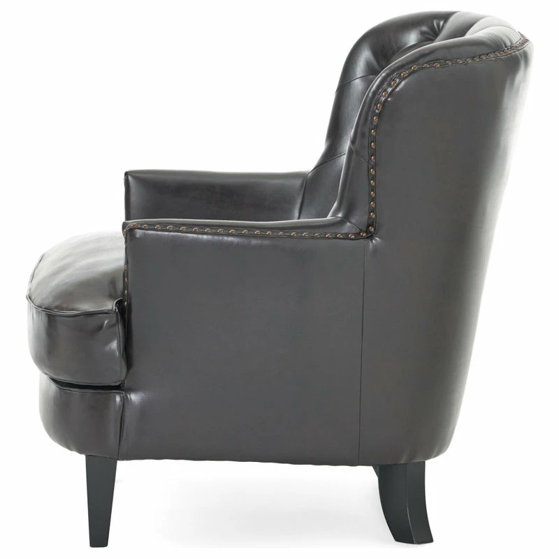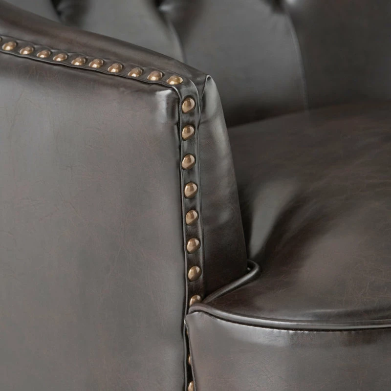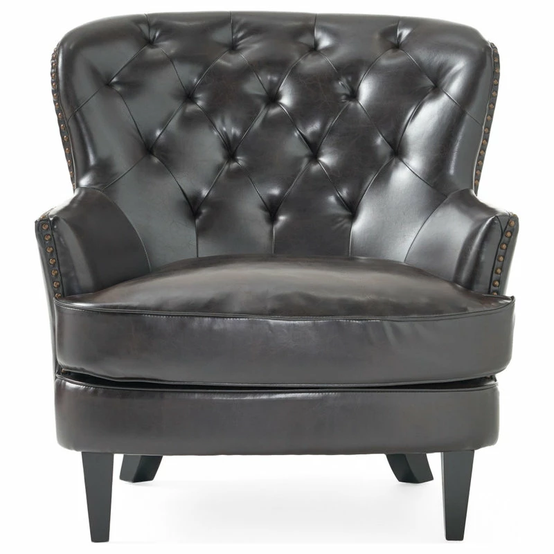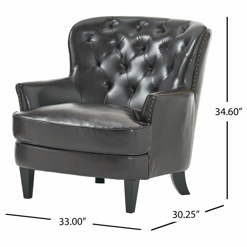 The Melford chair offers all the elegance of the classic club chair. It has a wide padded seat, and a diamond-tufted backrest. Studded accents that line the perimeter of the chair and its wide stance provides plenty of room for a comfortable seating experience. This chair can be placed in any room or office space