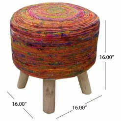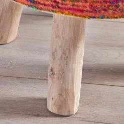 Playful and whimsical, this bright and cheerful stool is the perfect way to add a pop of color to any room. Our ottoman stool beautifully blends recycled silk upholstery and sleek eucalyptus wood to create an accessory of fun-loving aesthetics and delightful function. Meticulously rendered, this piece brings any home a carefree boho design that will instantly upgrade any interior decor. Whether you are using this as a footstool, an extra seat, or just as a decorative piece, this accessory is the perfect addition to any space.