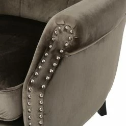 You canβt go wrong with soft textures and stylish seating that will transform your home into a refined living space. Our stunning club chair offers your interior space plush velvet upholstery and an elegant nailhead trim, making this your new favorite place to relax and unwind. Featuring beautiful button-tufted diamond stitching and subtle rolled arms, this piece brings your interior space a lovely upgrade in style. Finished with beautifully tapered legs, our club chair is the perfect charming touch for your home.