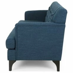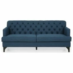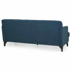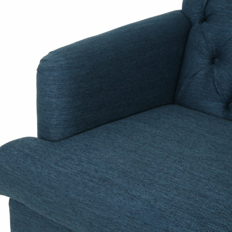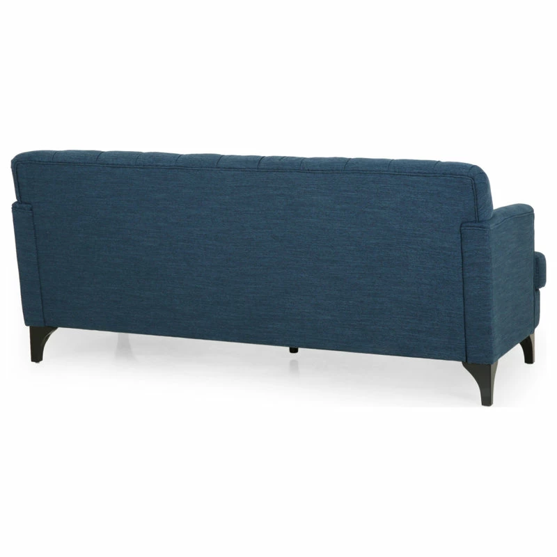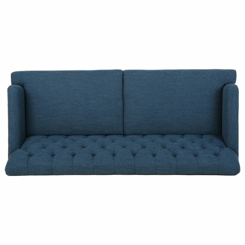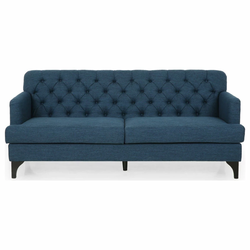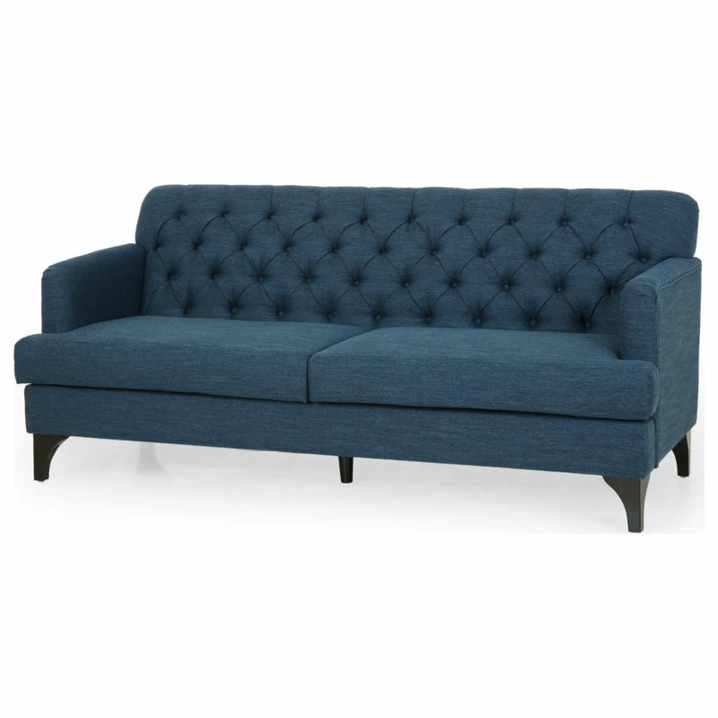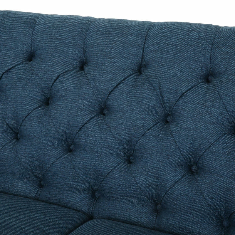 Looking for a classic yet modern touch to spruce up your living room space? Our charming sofa is here to fill that gaping void. With a deep button-tufted backrest and beautiful diamond stitching, our three-seater sofa brings your interior space the sophisticated and sleek atmosphere that you never knew you needed. This contemporary masterpiece is finished with lovely rounded arms, smooth T-shaped birch wood legs, and deep seating for a delightfully cozy place to curl up at home with your family.