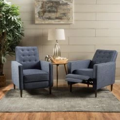 Looking for a place to prop up your feet and relax after a long day of work? Our mid-century modern recliners are a wonderful addition to any living room decor. Featuring clean lines and a smooth finish, these recliners offer you incredible comfort as well as sleek style. This is finished with lovely tapered legs for a sturdy structure and outstanding design. Complete with a beautifully button-tufted backrest and smooth upholstery for maximum comfort, these recliners will easily turn into your favorite place to unwind.