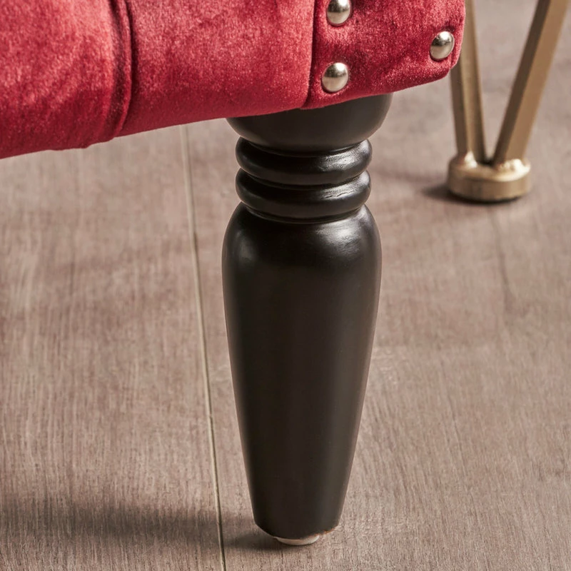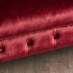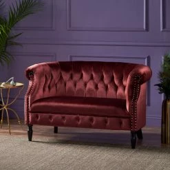 Refine your home with charming antique styling that a true connoisseur will recognize. This Chesterfield-style loveseat is the ideal addition to any living room with its classic design and traditional elements such as deep button tufting, scrolled arms, and nailhead accents. Featuring soft velvet upholstery, this loveseat stands as a streamlined statement piece that can change the whole flow of your living room, creating an open, clean space. Finished with beautifully turned legs, our loveseat provides an elegant touch to any room.