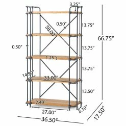 DIMENSIONS: Choose an accessory that is the perfect size for you and your furniture. This bookcase is 36.50″ W x 17.50″ D x 66.75″ H. You will love how much your space can transform with the simple addition of this charming bookshelf.
