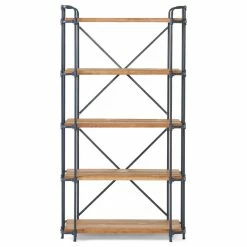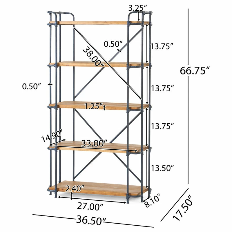 IRON FRAME: The sturdy construction of this iron frame ensures that this bookshelf will hold up under heavy use. This is reinforced with an X-frame iron stretcher on the back of the bookshelf.