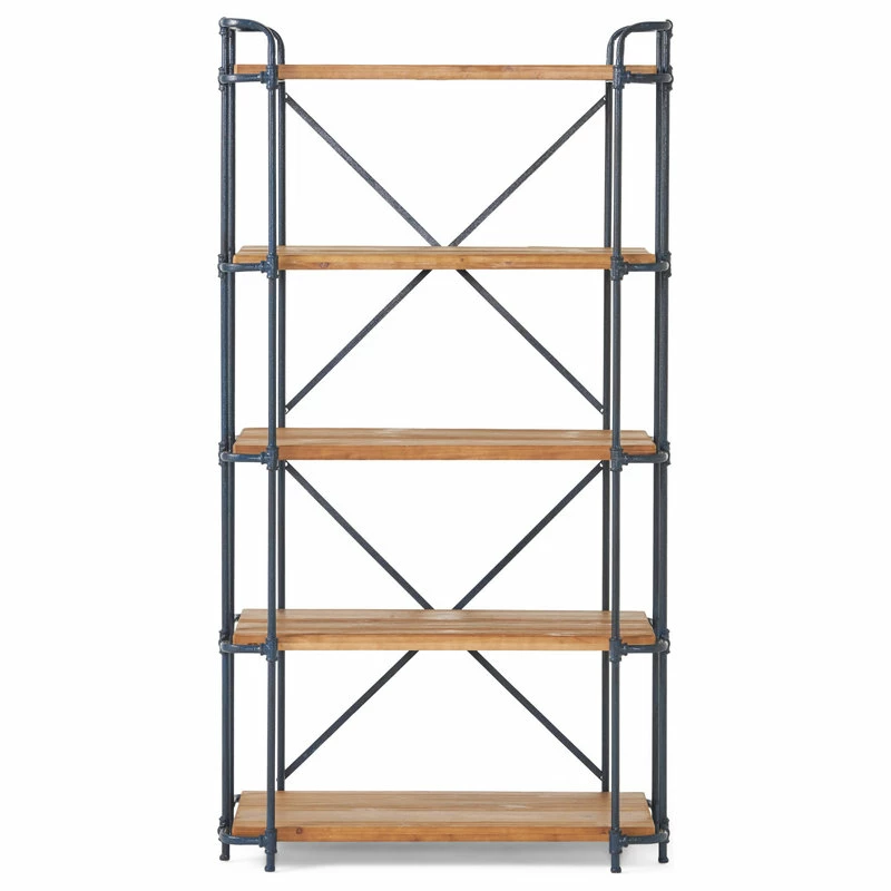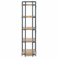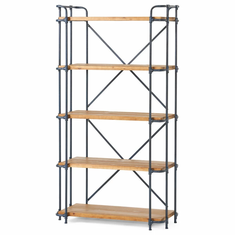 This rugged, industrial bookshelf will add grit and character to any home or office, perfect for those who never stop striving. Expertly constructed from distinctive metal pipework and inlaid with carefully-sourced solid fir, our etagere bookcase is designed to hold up under heavy use. Its shelves are an excellent display for your library or other treasured items including plants, knick-knacks, novels, pictures, and games. These shelves can hold it all. Perfect for living rooms, bedrooms, or home offices, our bookcase will add more storage space wherever you need.