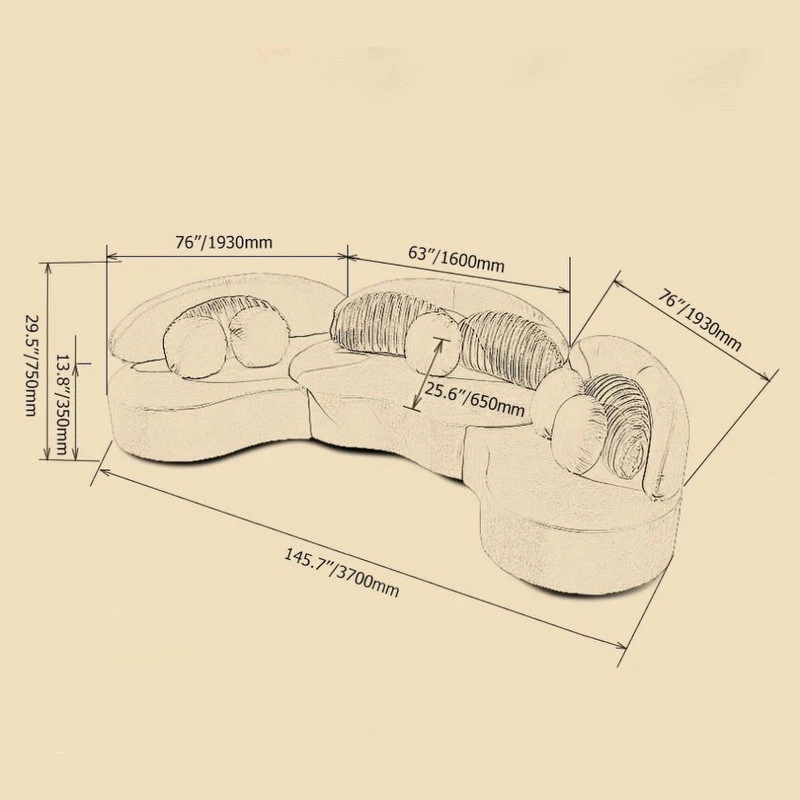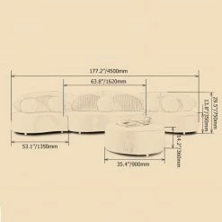 - Overall Dimensions: 177.2″W x 31.5″D x 29.5″H (4500mmW x 800mmD x 750mmH)