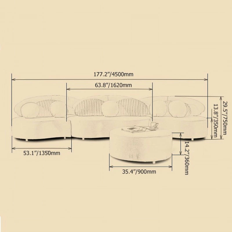- Ottoman Dimensions: 35.4″Dia x 14.2″H (900mmDia x 360mmH)