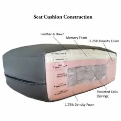 - Ultimate Seating Comfort: Removable seat and back cushions made with premium goose feather and down, pocketed coils, 2.25 high resiliency foam and memory foam.