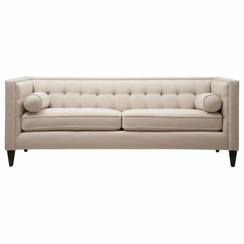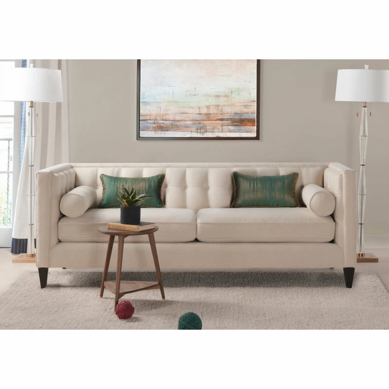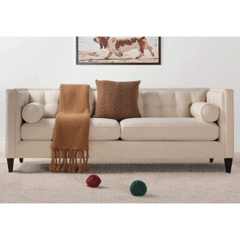 For a bold, modern statement to your living room decor, look at the Jack Seating Collection by Jennifer Taylor Home. The traditional Tuxedo silhouette gets a modern makeover in this perfectly square button tufted design, with tapered wood legs and a geometric silhouette reminiscent of the Chesterfield style. The medium-firm seat cushions are completely removable and reversible and are set off stylishly with two accents bolster pillows. Whether you’re relaxing with your favorite book in the family room or entertaining guests, the Jack Seating Collection can fill any living situation with the matching set of sectional, sofa, loveseat, and armchair available.