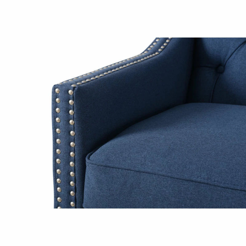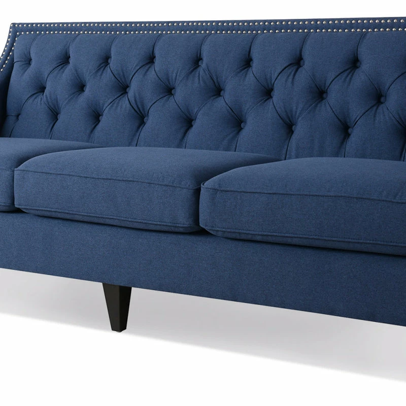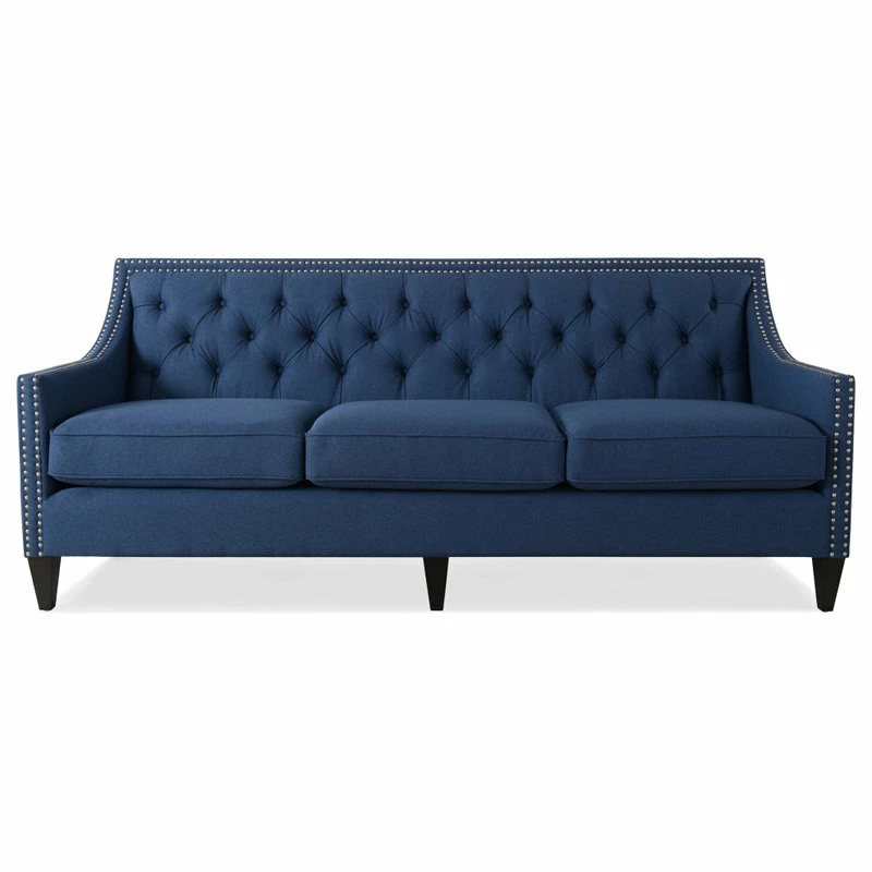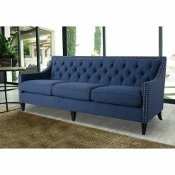 The Marianne Collection by Jennifer Taylor Home is the perfect addition to any living space looking to add a bit of contemporary flair. High quality fabric wraps a solid wood frame made from kiln dried birch which provides exceptional support and stability. This unique design is accented with hand tufts along the back and hand applied nail head trim along the outline. The Marianne upholstered sofa is an ideal choice for your living room, den, office, or any living space you prefer. This 3-seater sofa brings class and lounging comfort to any room in the home. Jennifer Taylor Home offers a unique versatility in design and makes use of a variety of trend inspired color palettes and textures. Our products bring new life to the classic American home.