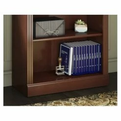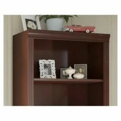 Classic furniture built to last, choose the kathy irelandยฎ Office by Bush Business Furniture Bennington 5 Shelf Bookcase. This timeless slender design fits where you need it most or add multiples side by side for a complete storage wall design. Bookcase includes three adjustable shelves and two fixed shelves and features decorative edge detailing which adds to it’s refined elegance and charm. Ideal for storing books, binders and decor, the rich Harvest Cherry finish complements virtually any room or decor. Built to last and durably constructed, this product meets ANSI BIFMA furniture standards for safety and performance. Bring a sense of timeless style and tradition into your home or workspace with this and other products from the Bennington Collection. See the full line for other items available all backed by a 6 year manufacturers warranty.
