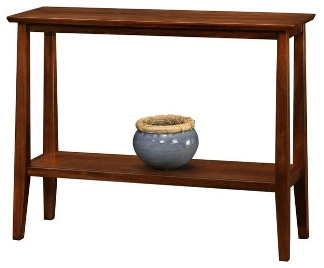 Brushed nickel accent hardware and a rich, Sienna and Brown finish put Deltonβs all solid wood Hall Table on center stage. Tapered legs, under beveled tops, and plenty of open air at the floor combine for a breezy, open design…and, simple to vacuum beneath!