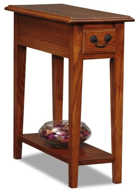 Solid hardwood construction and a gorgeous hand applied multi-step finish sets this table apart from the rest. A rich, medium oak finish, designed to complement many popular color and furnishing approaches, make this narrow table an ultimately versatile design along side seating pieces. Scaled to fit most anywhere but generous in function with surface, drawer and shelf display uses.