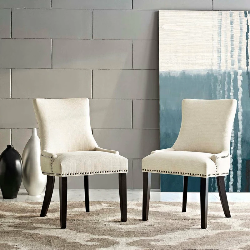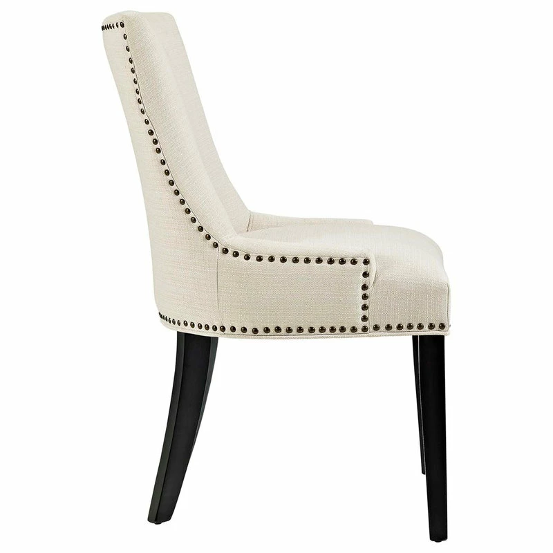 Inspire your decor with the Marquis Dining Side Chair. Marquis is fashioned with a chic hourglass shaped back, studded nailhead trim, non-marking foot caps, tapered wood legs, and a regal seat generously padded in foam and upholstered in polyester fabric. Marquis works well in both modern and traditional dining rooms.
