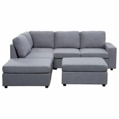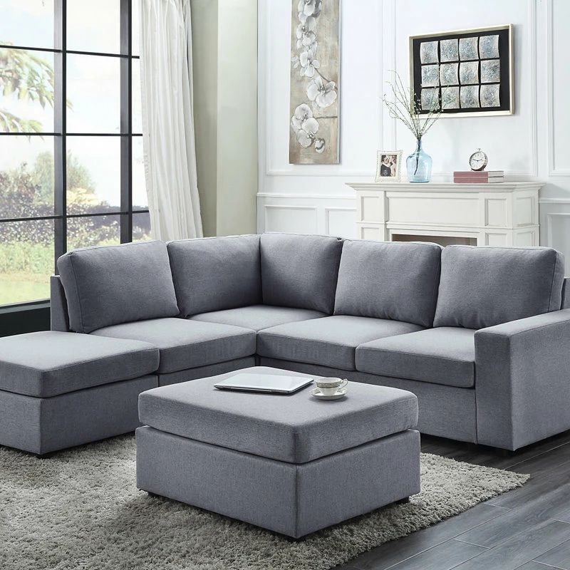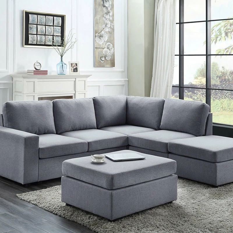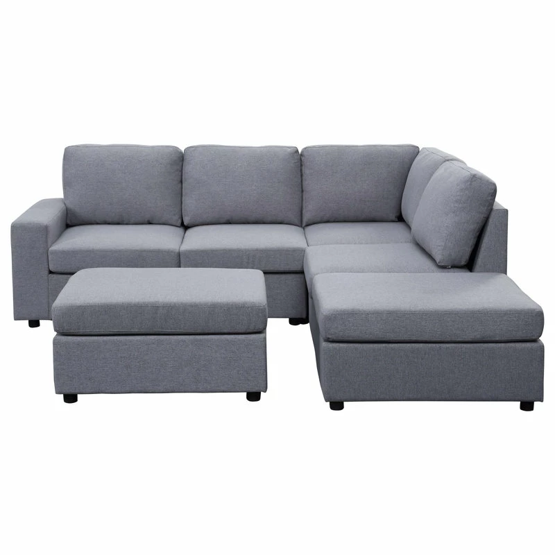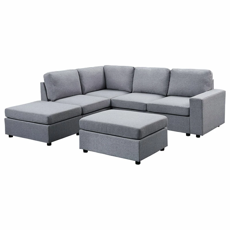 Marta Light Gray Linen 6 Seat Reversible Modular Sectional Sofa with OttomanSit back and relax in the Marta Collection! Crafted from solid wood and fine fabrics, this 6 piece Modular Sectional Sofa with 2 Ottomans will welcome you and your guests to enjoy your activities in style and comfort. Clean and Simple with generous amounts of space, this European Style is a timeless look and is the leader of furniture trends.