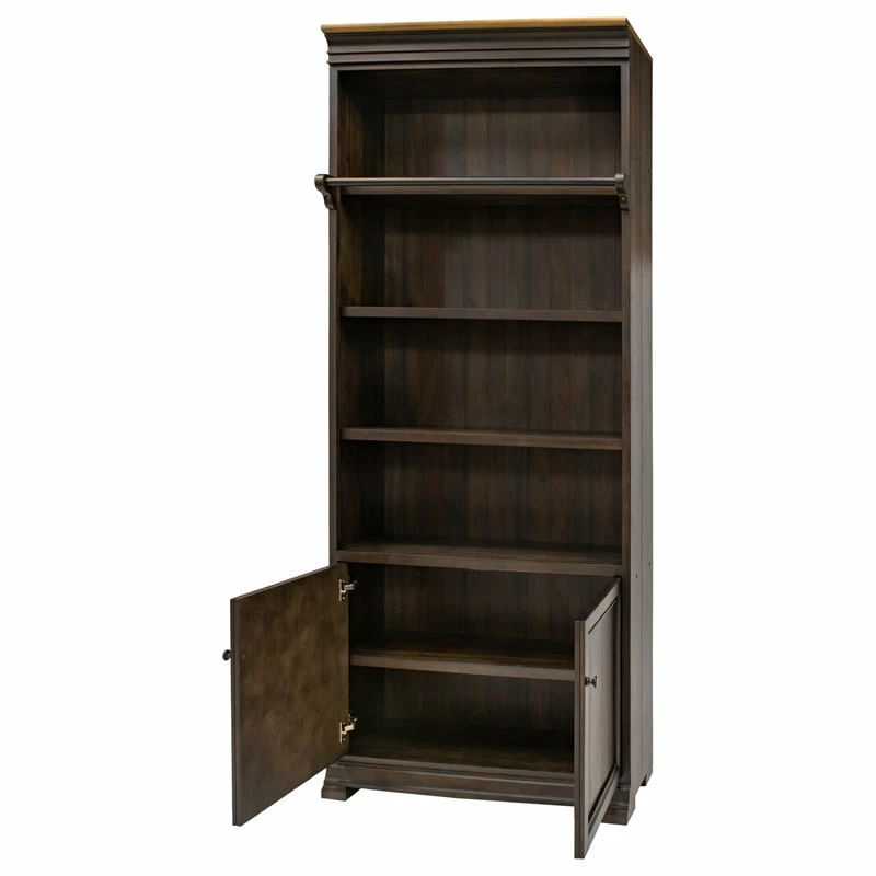 The Sonoma collection provides elements to create a truly inspirational office environment. Hand planked wood veneers in a rich, dark roast finish the color of freshly brewed coffee, show highlights of natural wood that has aged and is mildly distressed. Distressing includes rasping, chopping and worm holes, solid wood plank tops that accent the dark finish and emphasize the wood’s natural beauty for two-tone authenticity. Antique bronze hardware adds a shimmering touch.