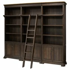 Outlet 🤩 Martin Furniture Executive Bookcase Wall With Wood Ladder, Fully Assembled, Brown ⭐