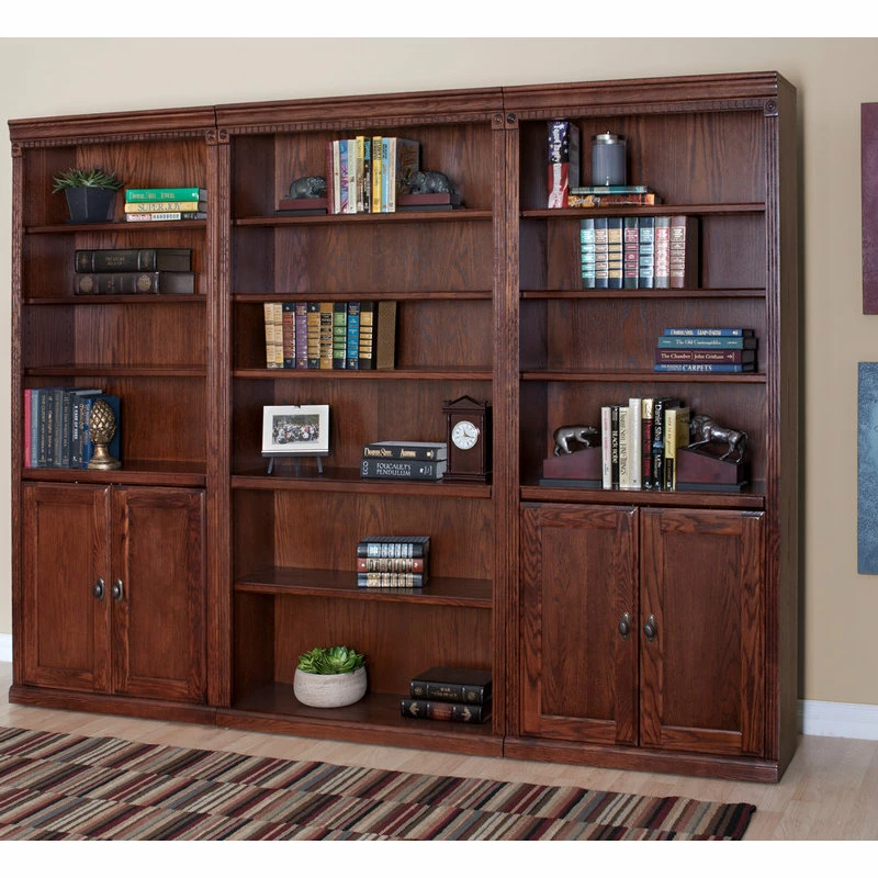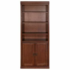 Handcrafted with timeless, classic styling, the Huntington Oxford office collection showcases the beauty of warm burnish brown hardwood solids and veneers. With a high attention to detail, the library bookcase features two fixed shelves for stability, four adjustable shelves for storage and two soft closing doors for more storage versatility. The distressed burnish finish on the Huntington Oxford Open Bookcase presents a unique, worn appearance that will truly withstand time.