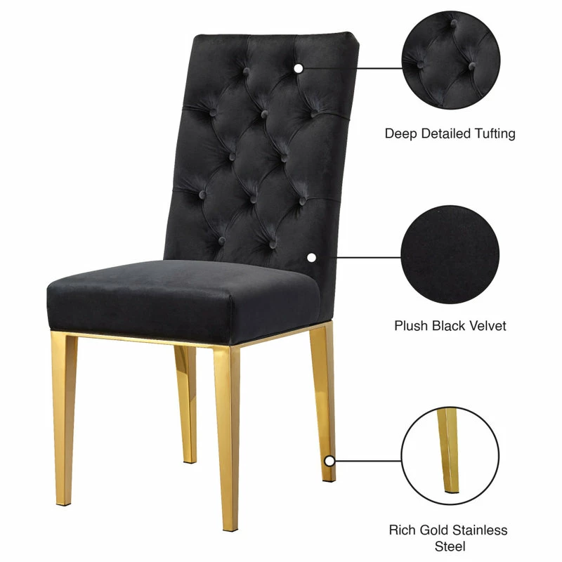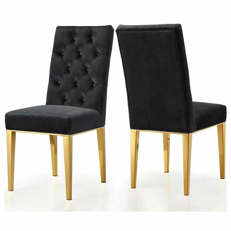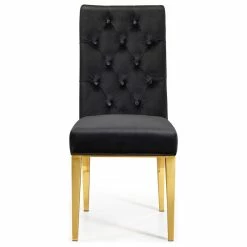 Refresh your tableside seating with the Capri Velvet Dining Chairs. Highlighted by tufted velvet upholstery and gold-plated stainless steel bases, these chairs update a traditional design that’s fit for the modern home.