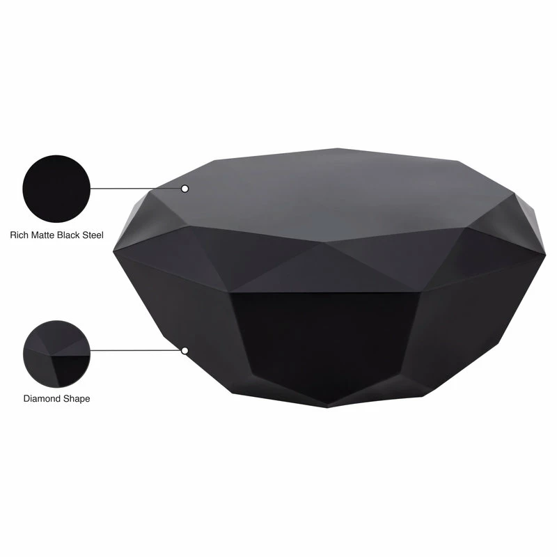 The Gemma table, by Meridian Furniture. Featuring a unique diamond shape, and constructed of matte black steel. This beautiful coffee table is guaranteed to be the highlight of any room.
